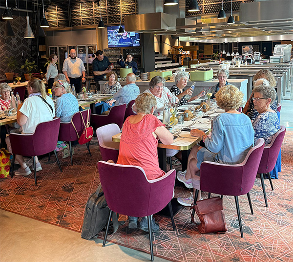 De presentatie was boeiend en leerzaam: Sligro richt zich tegenwoordig volledig op de horeca en foodservice – dus niet meer op supermarkten. Het draait allemaal om eten, drinken en gastvrijheid. Er werden volop vragen gesteld – het werd echt een kijkje in de keuken van de foodwereld!
